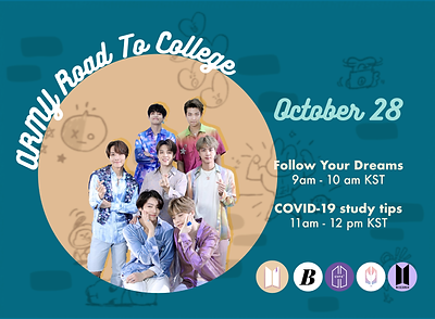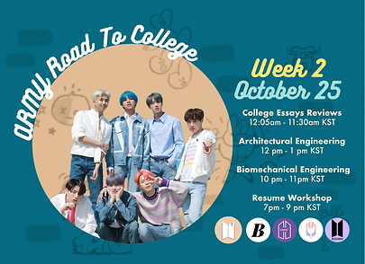 ARMY Road to College is back this year! Join our one-week event full of activities to learn more about college majors. If you're unsure of what to study in college or want to know more about college life, join our online events to hear ARMYs share their experiences. And yes, it is free!